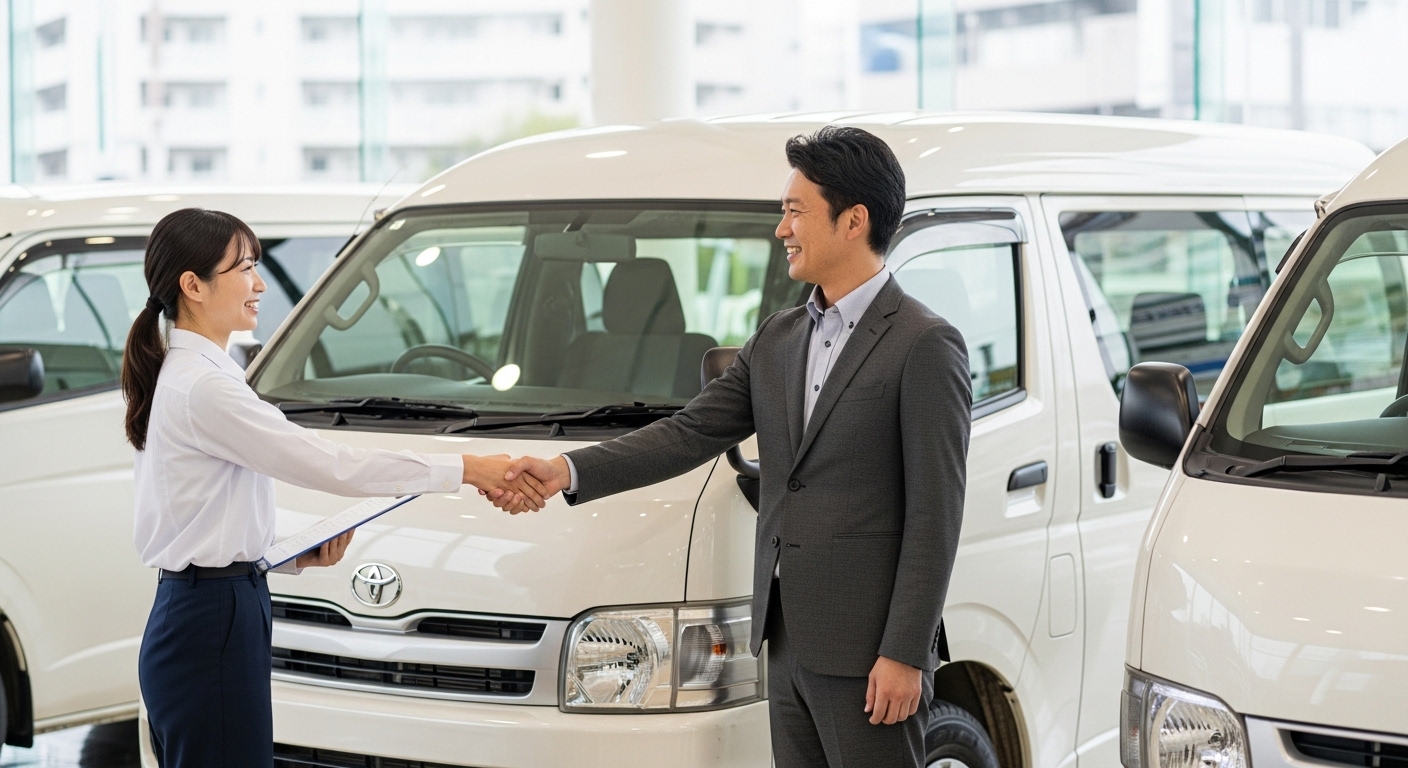 ハイエースが商用車として人気な理由は、積載力・耐久性・ディーゼルの燃費・中古市場でのリセールバリューの高さにあります。「どんな仕事で使うか」を起点に、ボディサイズ・グレード・駆動方式を選び、自社ローンで無理のない返済計画を立てることが最も大事です。